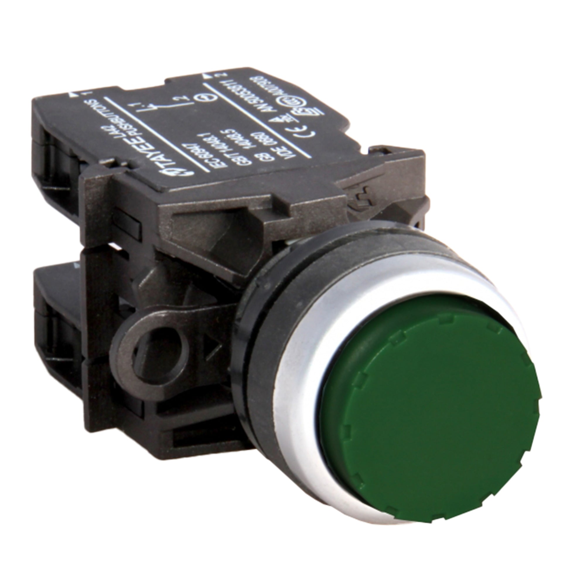 These 22mm (7/8") momentary and maintained push button switch includes 1 removable normally open (N.O.) and 1 removable normally closed (N.C.) contact block for applications requiring a momentary double pull single throw (D.P.S.T) contact signal.